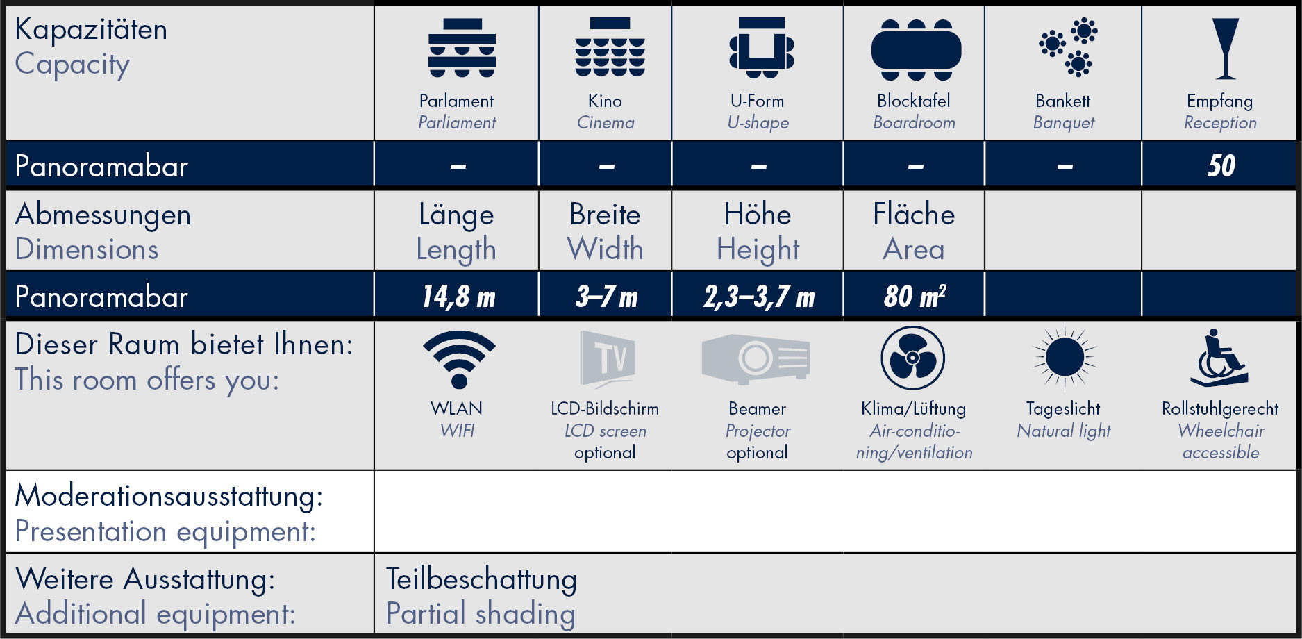Die Panoramabar im Wasserturm beeindruckt durch ihre außergewöhnliche Architektur und den spektakulären Ausblick. Sie ist ideal für Events wie Firmenfeiern oder Präsentationen. Die kreative Getränkekarte verlockt ebenfalls zu einem stilvollen und relaxten Gläschen mit einem Geschäftspartner oder Kollegen.