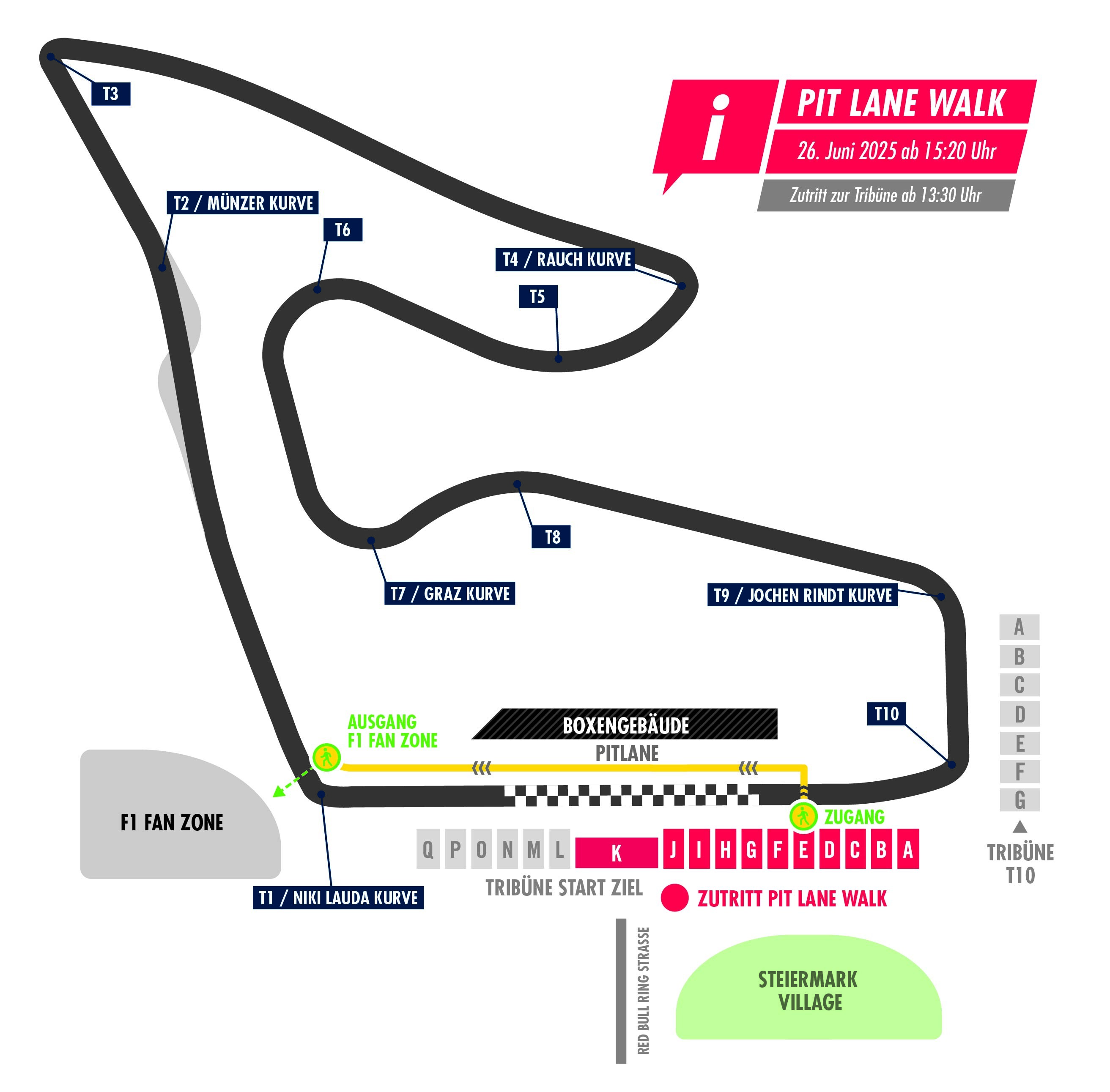 From 27 to 29 June 2025 Formula 1 will once again celebrate a typically Austrian and unique motorsport festival at the Red Bull Ring with its fans. One day before the action starts with the first practice sessions, you have the chance of walking directly into the pulsating heart of motorsport’s premier class during the official Pit Lane Walk on the afternoon of June 26. What you need? A weekend ticket for the Austrian Grand Prix, a Pit Lane Walk ticket and a charged camera to capture all those unforgettable moments! The good news is that F1 Tickets are still available and grabbing one right now will get you on the winning team. But beware: Pit Lane Walk Tickets are limited and our experience in the last few years has shown that you need to act quickly if you want to get face to face with your favourite F1 cars and teams.