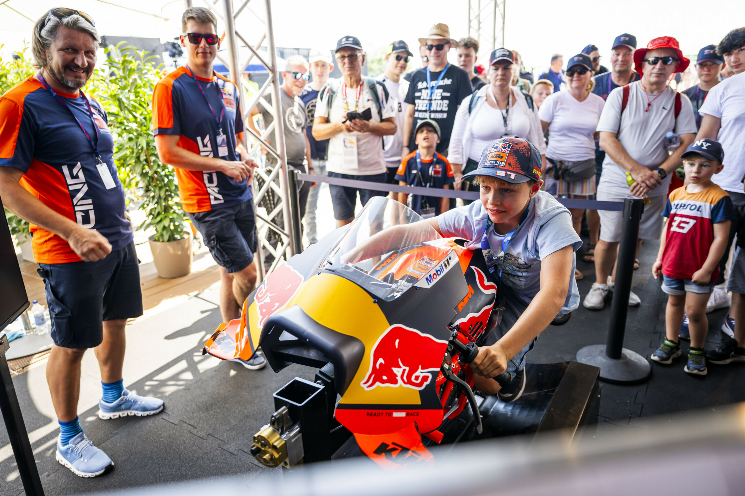 Have you ever wondered what it feels like to lean into a corner with your motorbike at the Red Bull Ring? Test the world’s best MotoGP simulator during the World Championship weekend – a technological marvel developed by sevensim and pool3, created with support from Red Bull KTM Factory Racing. Original KTM MotoGP parts and five active axes allow for lean angles of up to 60 degrees, based on real telemetry data from the Red Bull Ring.